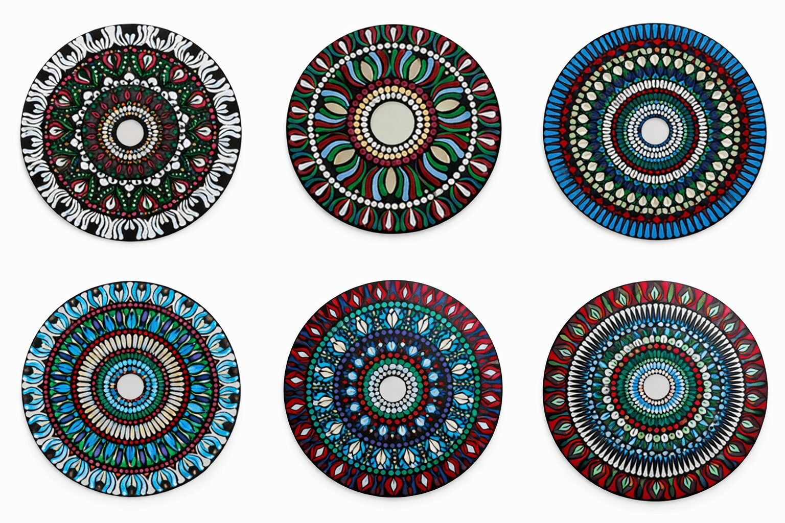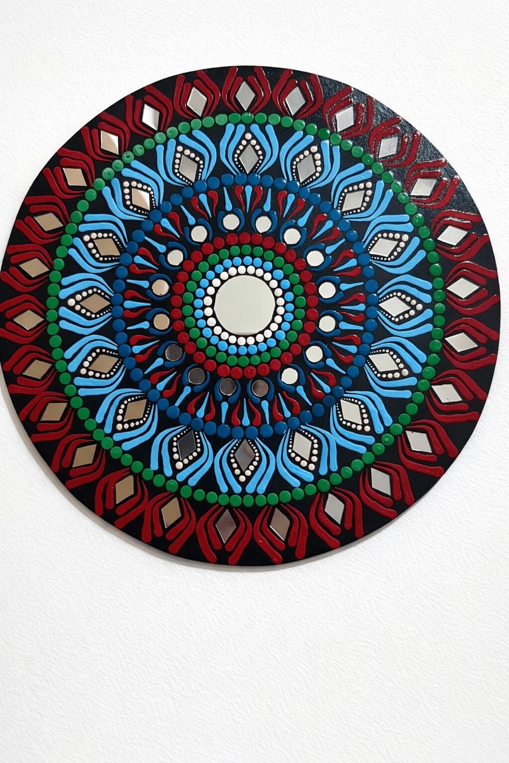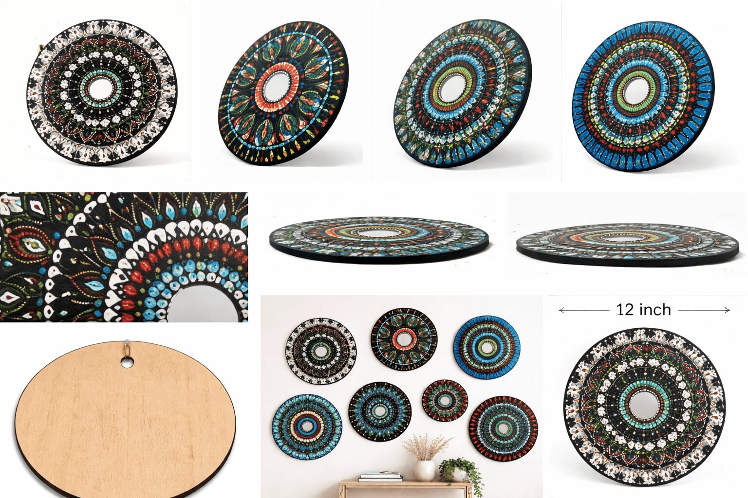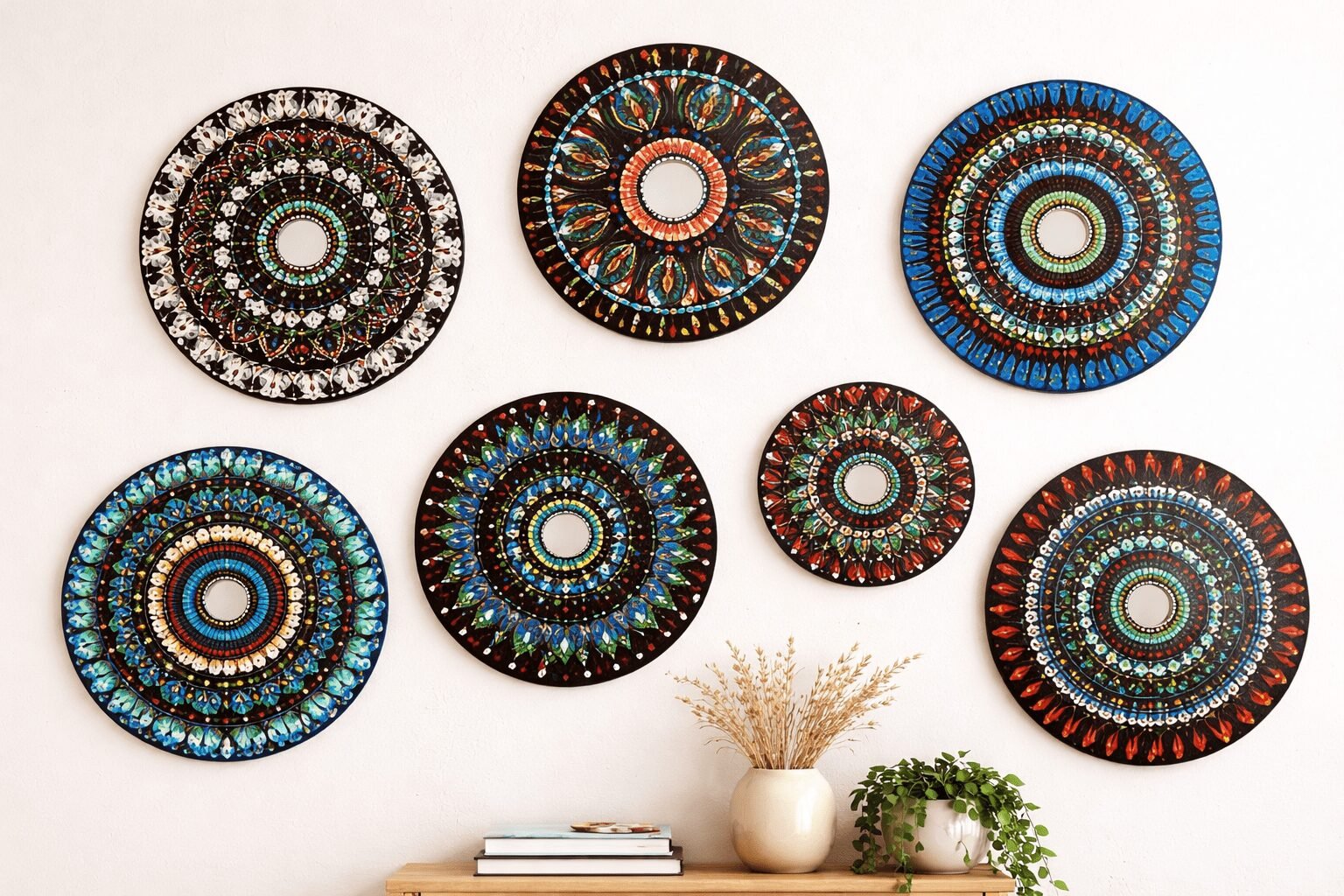 Hand-Painted Mandala Mirror Wall Décor- set of 7 plates