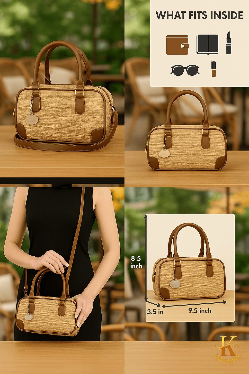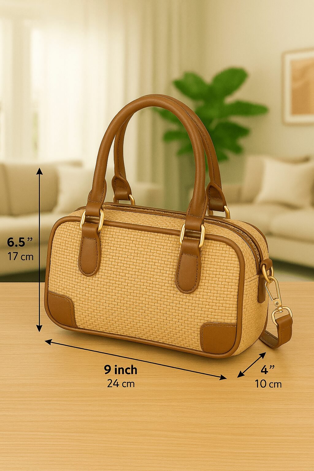 Elevate your everyday style with this beautifully handcrafted woven handbag, designed with a perfect balance of sophistication and functionality. Featuring premium woven material paired with sturdy faux leather handles and an adjustable long strap, this bag is ideal for both casual and stylish outings.