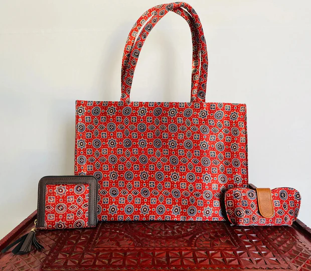 Indian Kutch Ajarakh Tote Bag- 3 Piece Combo